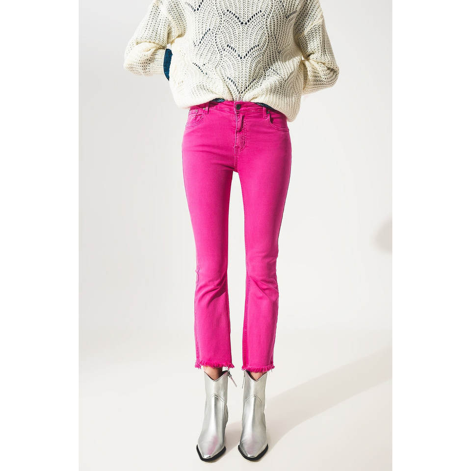 Ladies Fuchsia Flare Jeans Raw Hem Edge Boot Cut Straight Style Streetwear Casual Skinny Fit XL Size Denim Breathable Printed