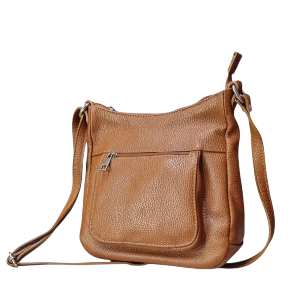 Ladies Genuine Leather Crossbody Bag Brown Pebbled Grain Zipper Lightweight Adjustable Strap Durable Fittings Wholesale Daily