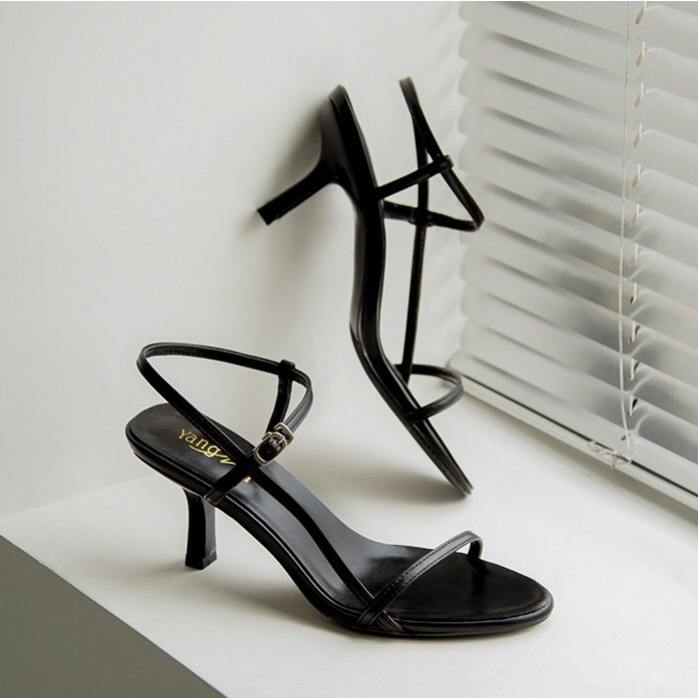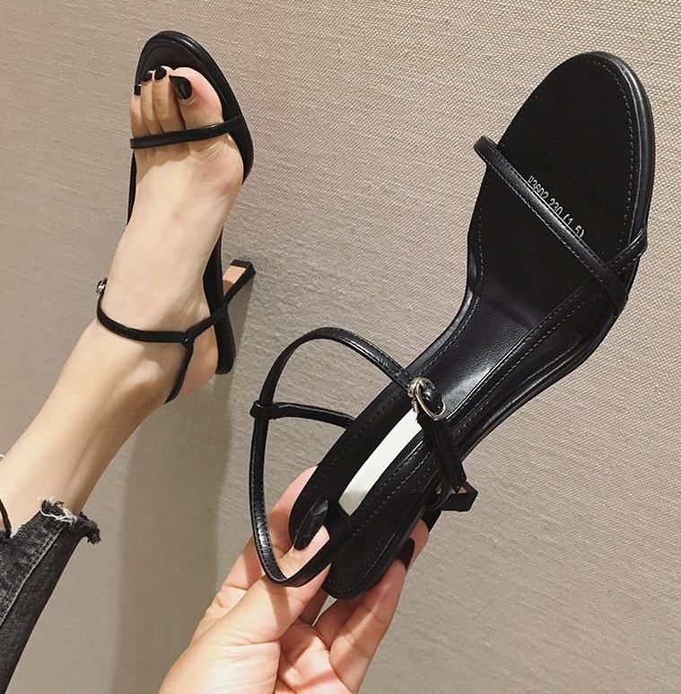 Ladies Heels Shoes Fashion Wholesale Designer Blue Pu Leather Open Toe High Heeled Sandals Summer Air Cushion Sandals