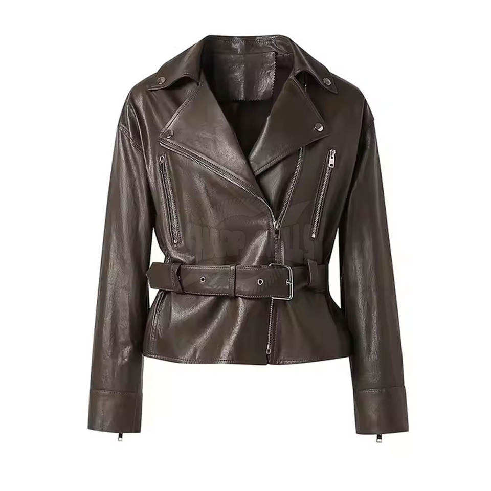 Ladies High Quality Leather Jacket Smooth Texture Strong Zipper Comfortable Lining Stylish Solid Logo