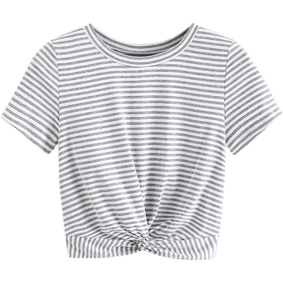 Ladies Knot Front White Crop Tee Soft Cotton Casual Summer Top Wholesale for women