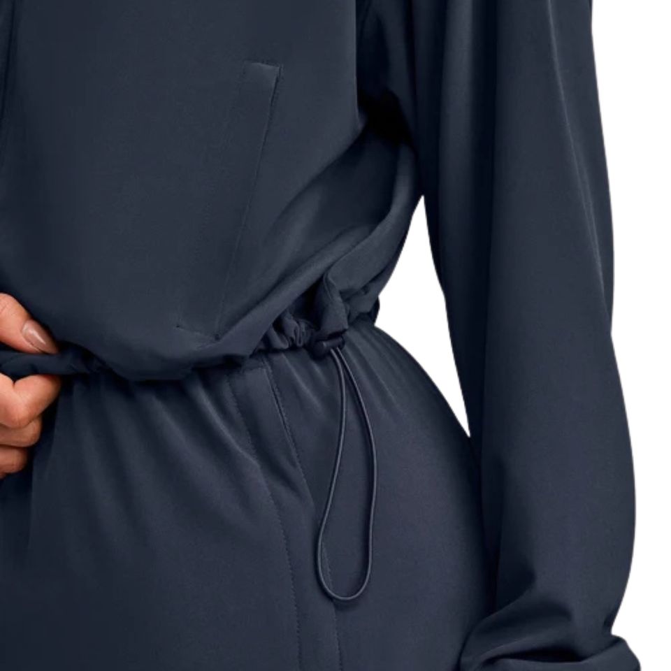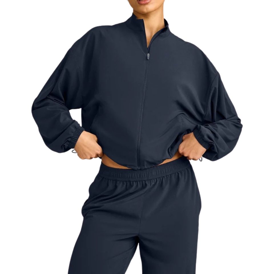 Ladies Lightweight Breathable Windbreaker Jacket Full Zip Loose Fit Stand Collar Running Adjustable Hem Gym Workout Outdoor