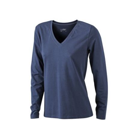 Ladies' Long-Sleeved Stretch V-Shirt Soft Elastic Single Jersey Stand Collar Size XL-for Office Wear