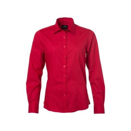 Ladies' Longsleeved Poplin Shirt Classic Striped Solid Pattern Embroidered Logo Easy-Care Blended Silk Knitted Available XS XL