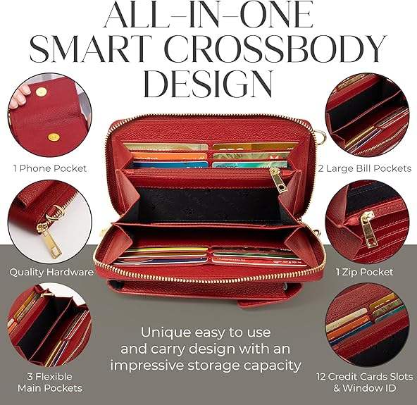 Ladies Luxury Genuine Leather Long Wallet Customizable Casual Purses with RFID Feature and Zipper Closure Satin Lining