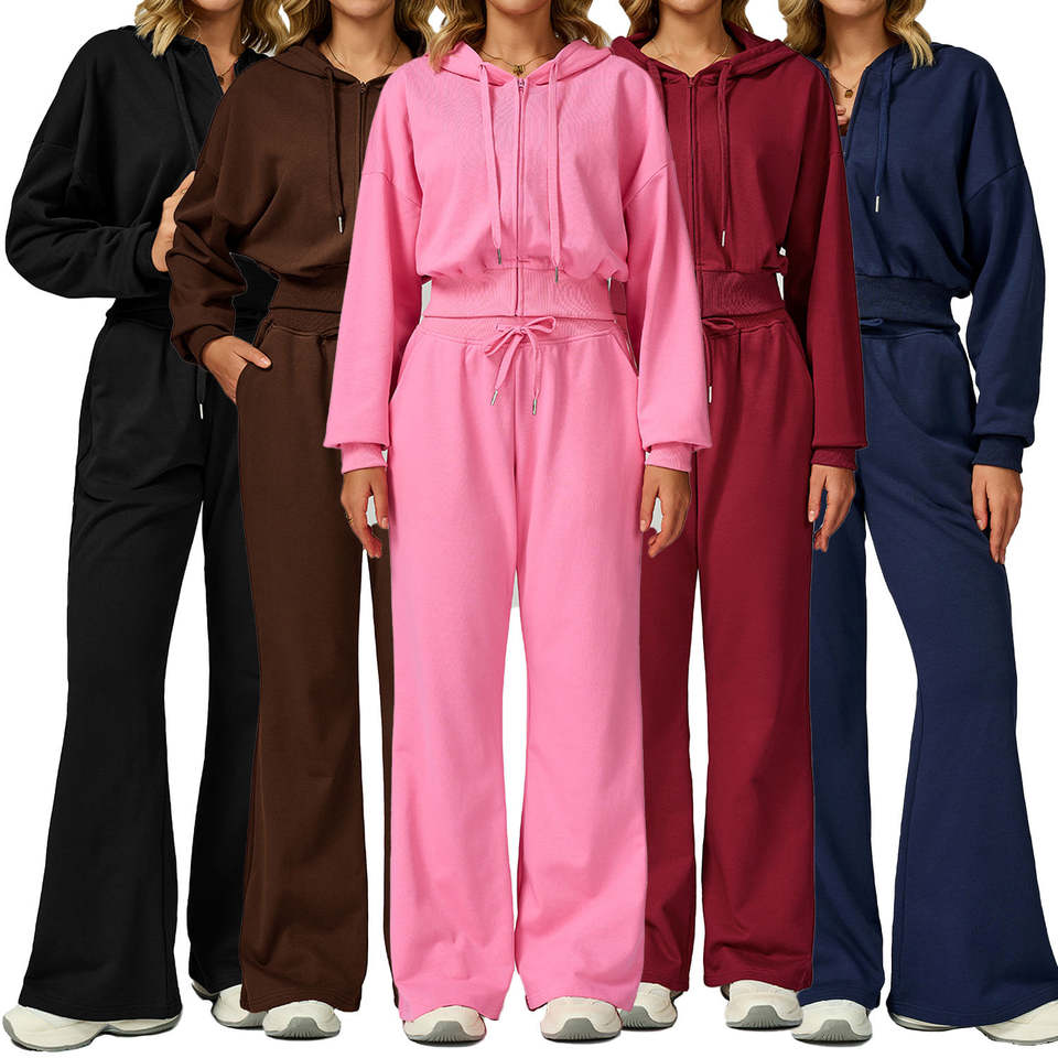 Ladies New Casual Hooded Long Sleeve Zipper Cardigan Sweater Above Knee Sports Two-Piece Yoga Set for Summer