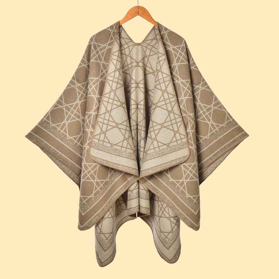 Ladies New Thickened Line Argyle Plaid Split Warm Lightweight Reversible Shawl Autumn Winter Simplicity Versatile Photo Cloak