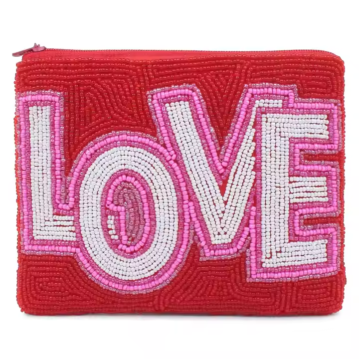 Ladies Party Evening Bags Satin Women Beaded Coin Purse Smiley Beaded Wallet Customized Colorful Beaded Coin Purse