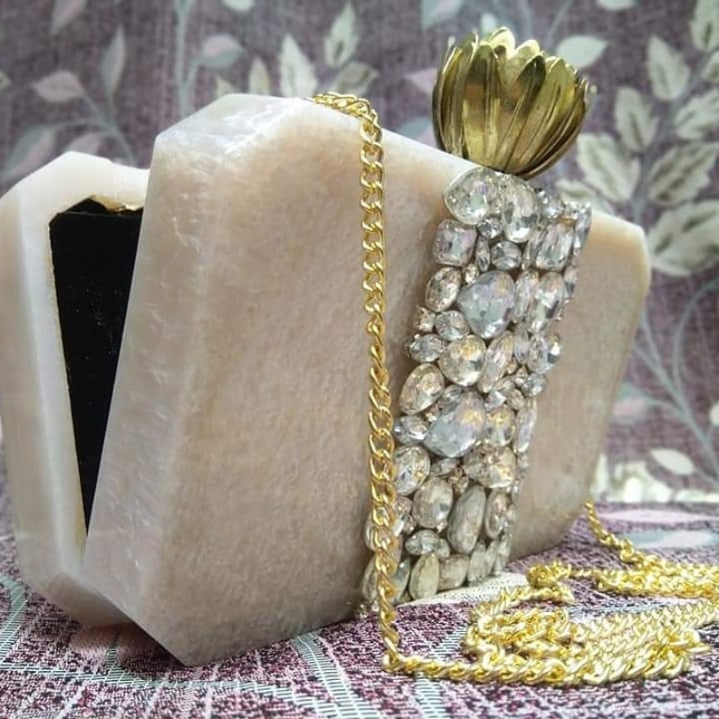 Ladies Resin White Stonework Clutch Mini Metal Handbags Wholesale Factory Price Women's Garden Ornament Bag