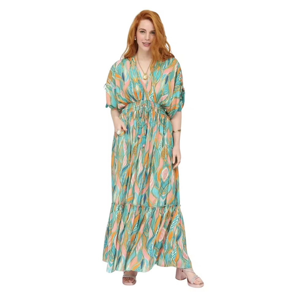 Ladies Sexy Summer Everyday Casual Floor-Length Cotton A-Line V-neck Sleeveless Tassel High Quality Natural Waistline Dress