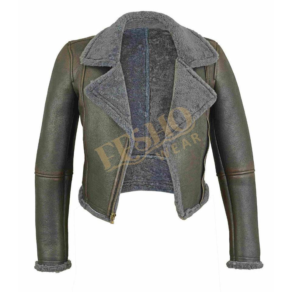 Women Leather Jacket:Made from Genuine Sheep shearling leather