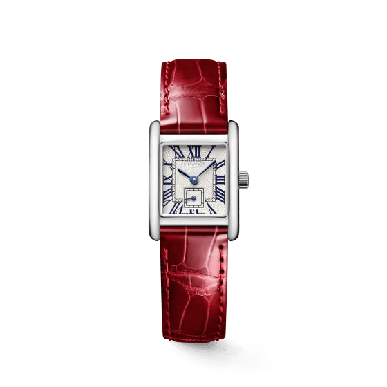 Ladies Style Rectangular Watch Polished Stainless Steel Case Embossed Leather Strap Roman Numeral Dial Subdial Longinesing