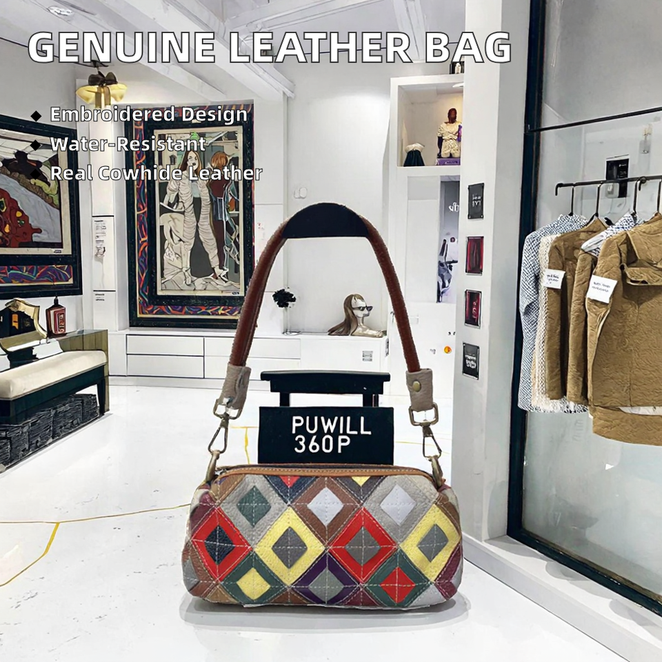 Ladies Vintage Fashion Handbag Genuine Cow Leather Small Square Sling Bag with Single Strap Zipper Closure