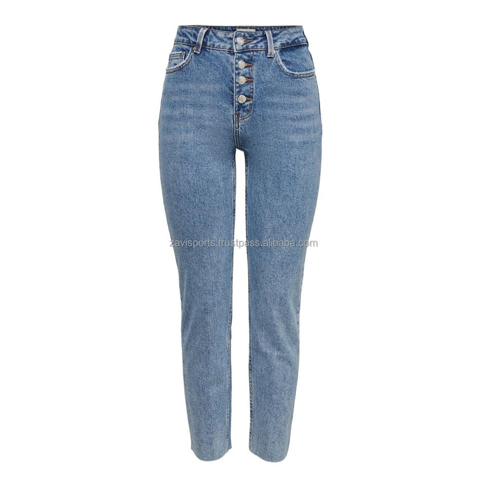 Ladies Women's Pants Jeans Women Denim Fabric Skinny Ladies Sexy Women's Pants Style Blue Color Leg Button Fly Jeans