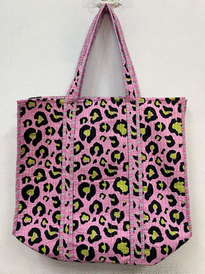 Lady Handmade Cotton Shopping Tote Bag with Zipper Closure Block Printed Indian Design for Women