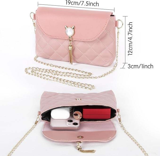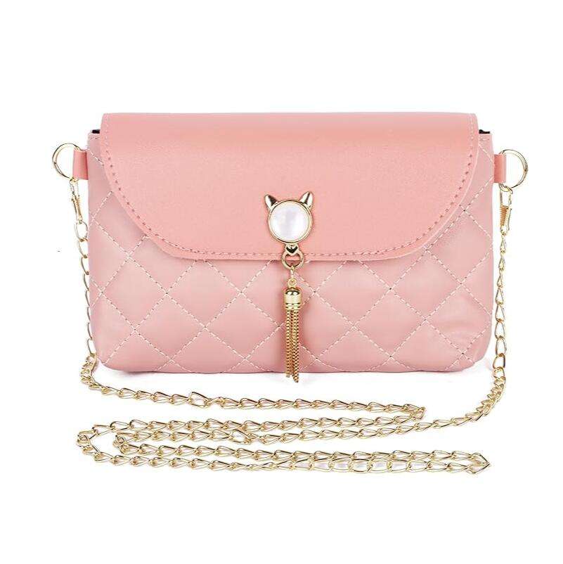 Lady Fashionable Cat-Shaped Tassels PU Leather Sling Crossbody Shoulder Clutch Handbag Cute Chain Messenger Bags for Girls Dress