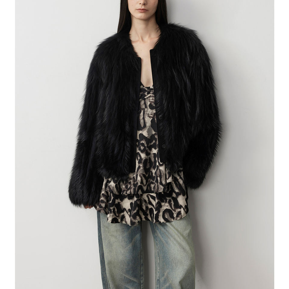 Lady Girl's Winter Fox Fur Coat Easy Casual Light Airy Artistic Vertical Car Strip Thick Lining Silk Breathable Trench