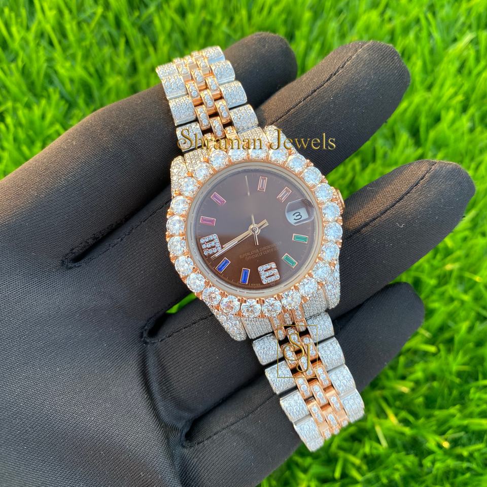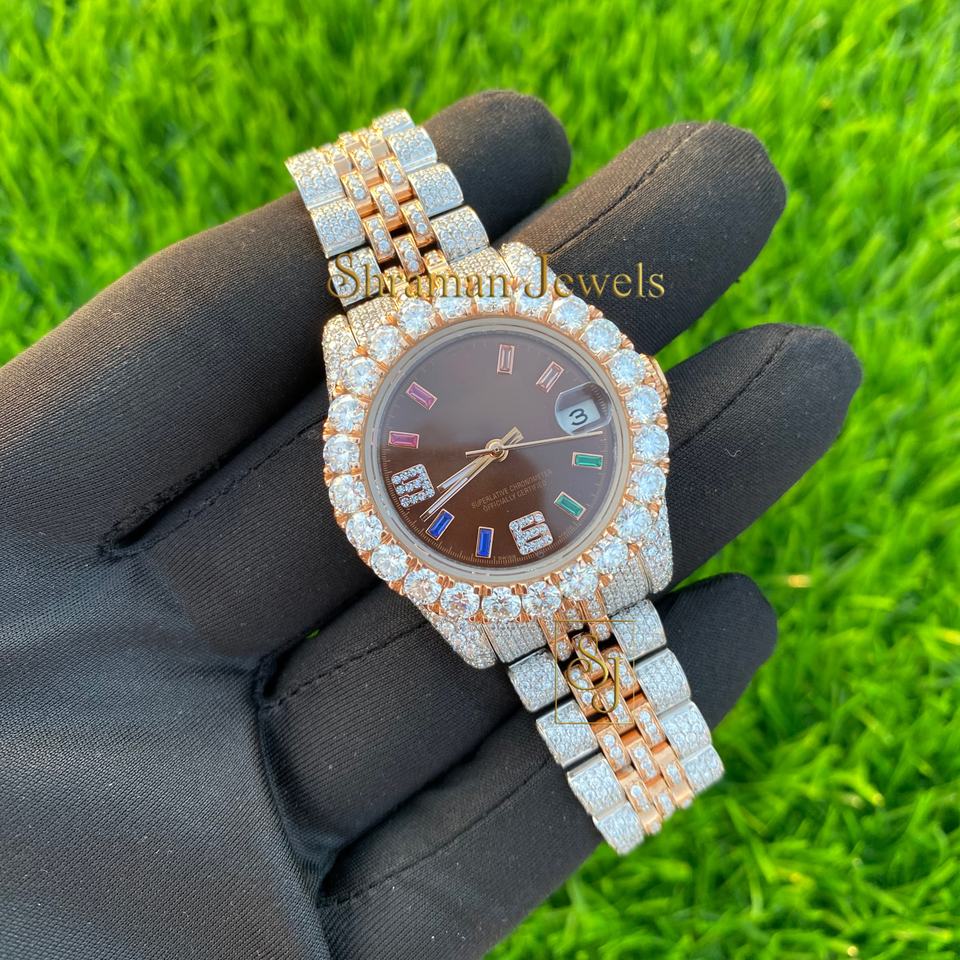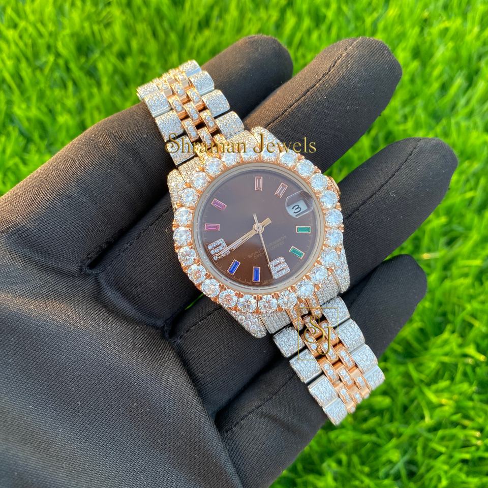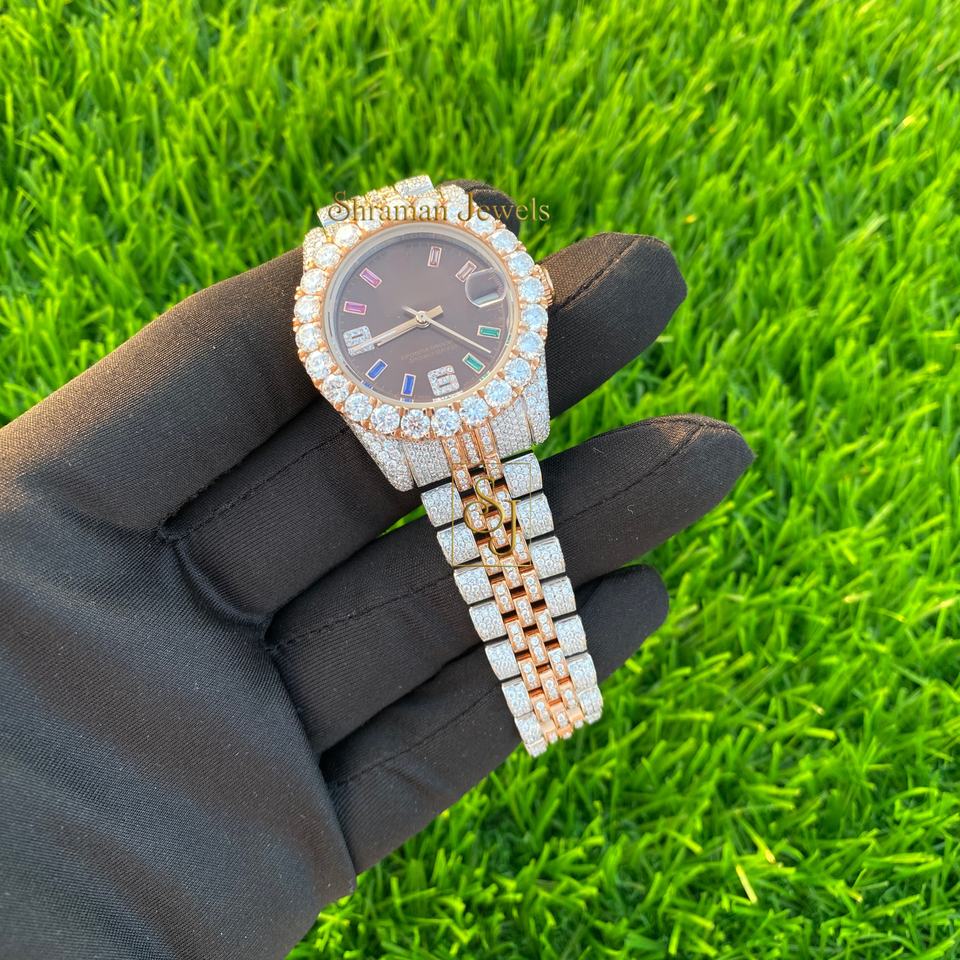 Lady Iced Out Watch With Moissanite & CZ Color Baguette Cutting & Round Brilliant Diamonds for Women Gifting Hip Hop Collection