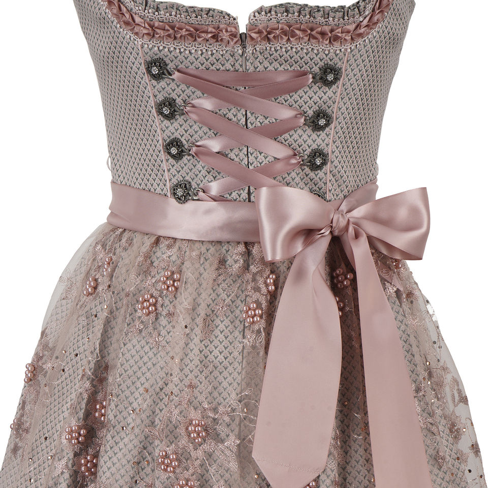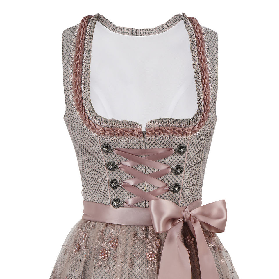 Lady Oktoberfest Costume-Bavarian National Pink Plaid Clubwear 3D Embroidery Technique Cosplay Carnival Halloween Fancy Party