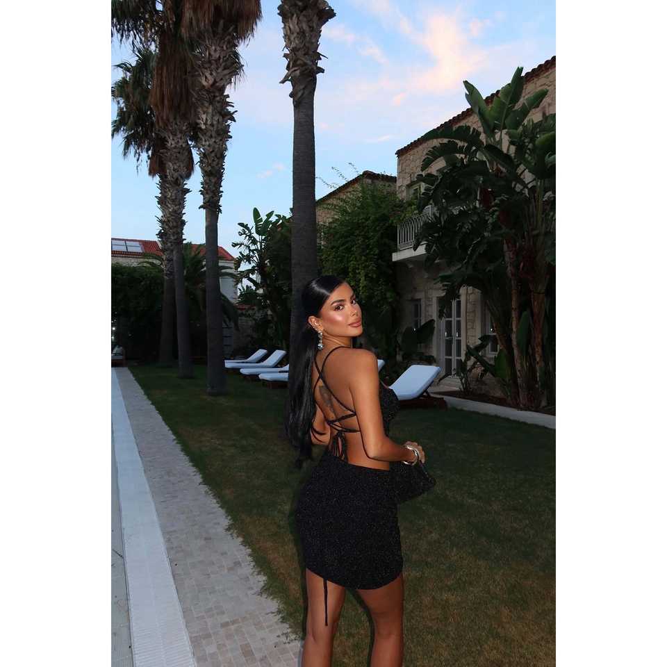 Lady's Black Nessa Glitter Two-Piece Set XS Size Woven Knitting Fabric Knee Length Casual Club Style Short Top Logo for Summer