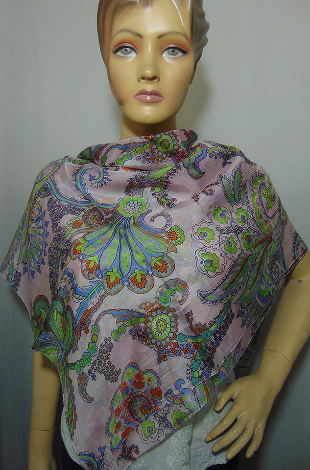 Lady's Lightweight 100% Pure Silk Shawl Scarf Long Square with Geometric Paisley and Flower Print Adult Department