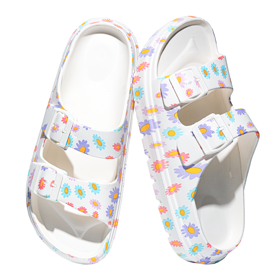 Lady's Lightweight EVA Casual Walking Sandals Slip on Open Toe Floral Pattern Footwear with Double Adjustable Buckle Straps