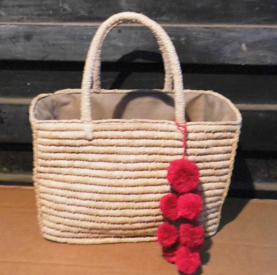 Lady's Trendy Crochet Raffia Woven Handbag Large Zigzag Pattern Flat Beach Tote Bag Two Handles Entirely Handmade Madagascar
