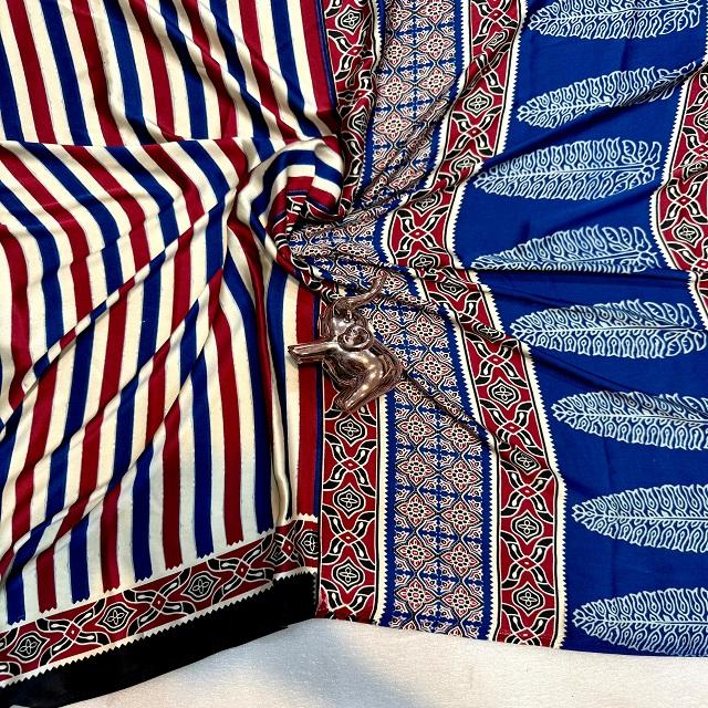 Lagdi Gajji Crepe Soft Silk Women's Saree with Rich Pallu Semi Gajji Original Ajrakh Bandhej Made in India in Stock