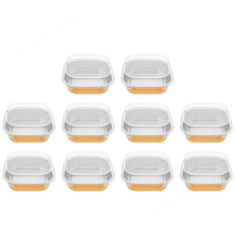 RE3G 10 Oz Baking Cups Aluminum Foil Cupcake Cups With Lids Square 300 Ml Cake Pan for Desserts Flans