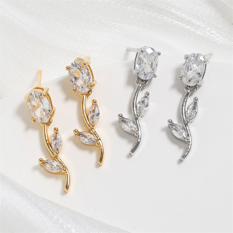 Lakor EP5842 Rose Niche Accessories Women's Fashion Jewelry Silver Needle Wedding Earrings