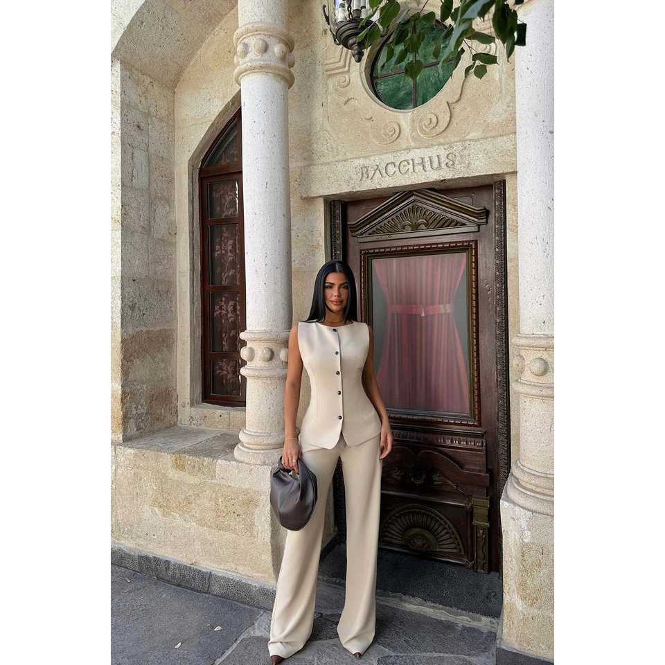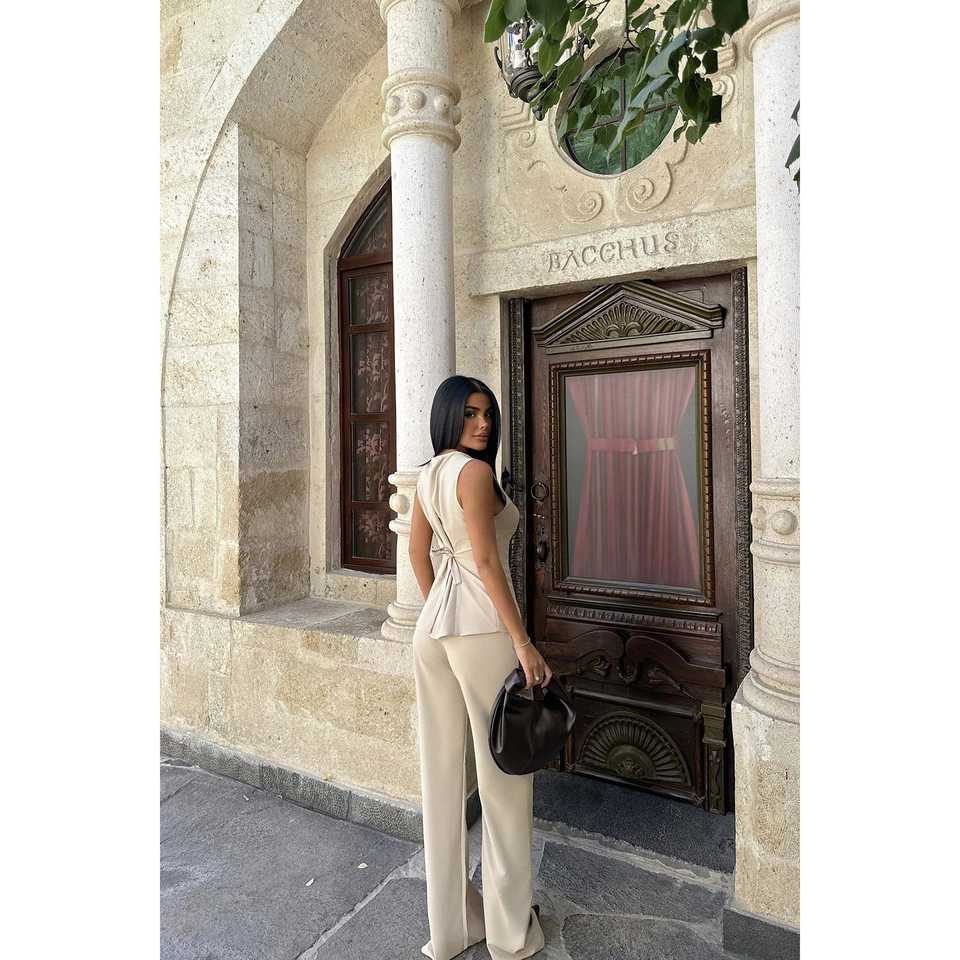 Lamarie for Cream Waist-Tie 2-Piece Set (Top and Bottom) XS-XL Sizes Elegant Outfits with Shorts Design
