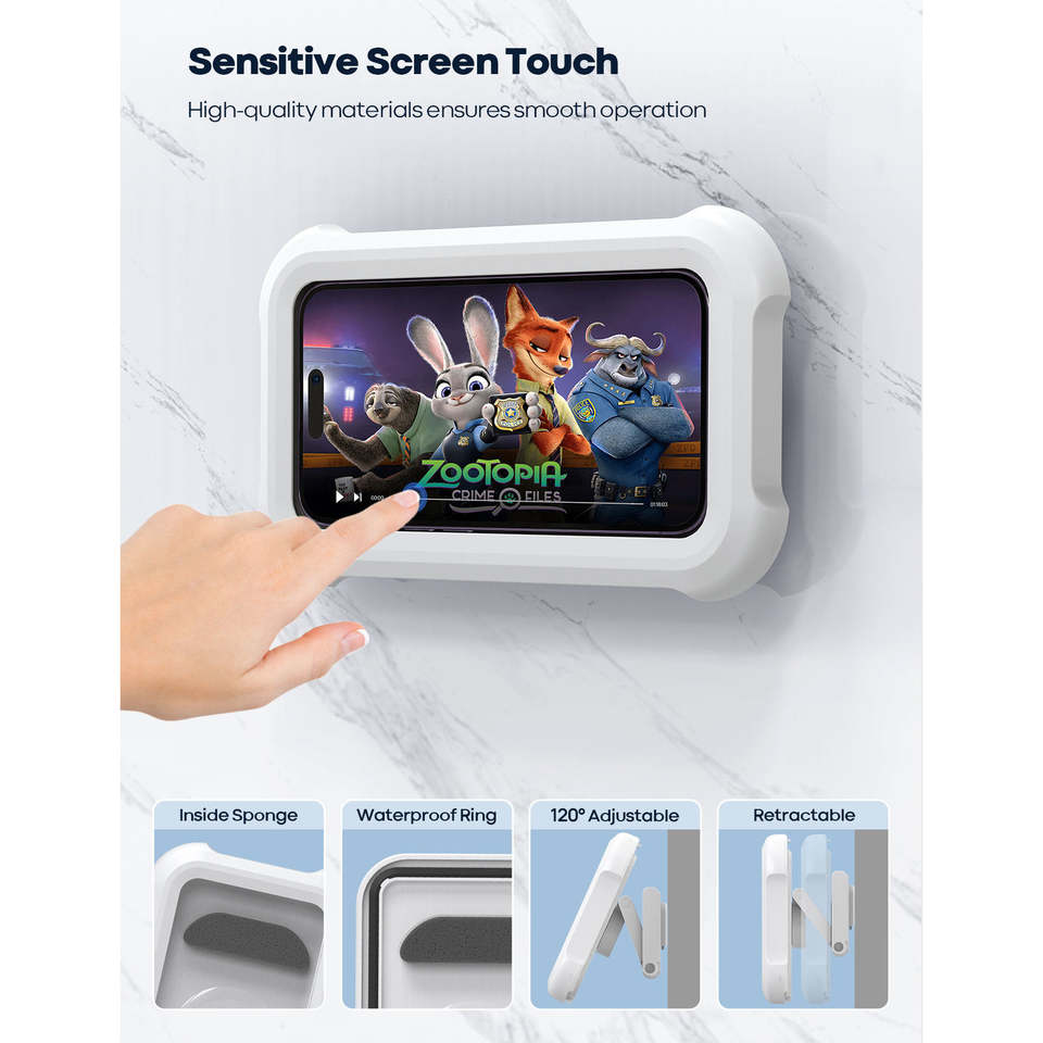 Lamicall STRY01 Extendable Arm Waterproof Cell Phone Holder for Shower Wall 480 Swivel Case Box HD Screen Protector 7Inch Device