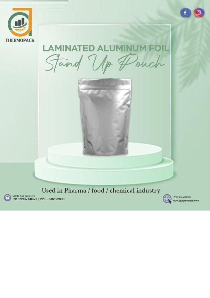 Laminated Aluminum Foil Stand Up Pouch for Food Pharma and Chemical Packaging Moisture Barrier Durable Flexible Packaging