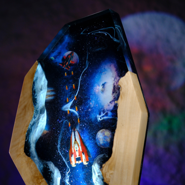 Lamp Resin, Epoxy Lamp, Lamp Custom Resin, Epoxy Resin Lamp, Purple Lamp, Night Light Wood, Table Lamp Wood, Christmas gift lamp
