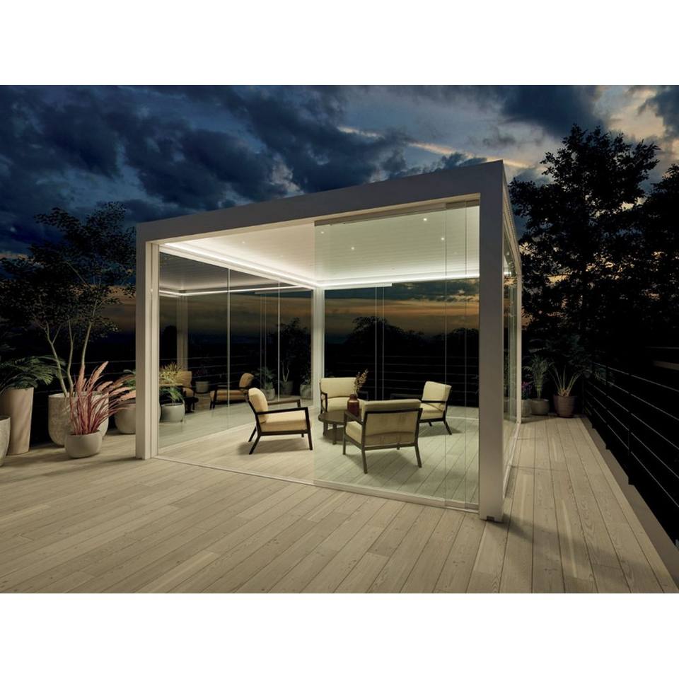 Lampedusa 7x7 Custom Italian Aluminum Pergola Wall-Leaning Design to Enhance Outdoor Spaces Pavilion or Gazebo