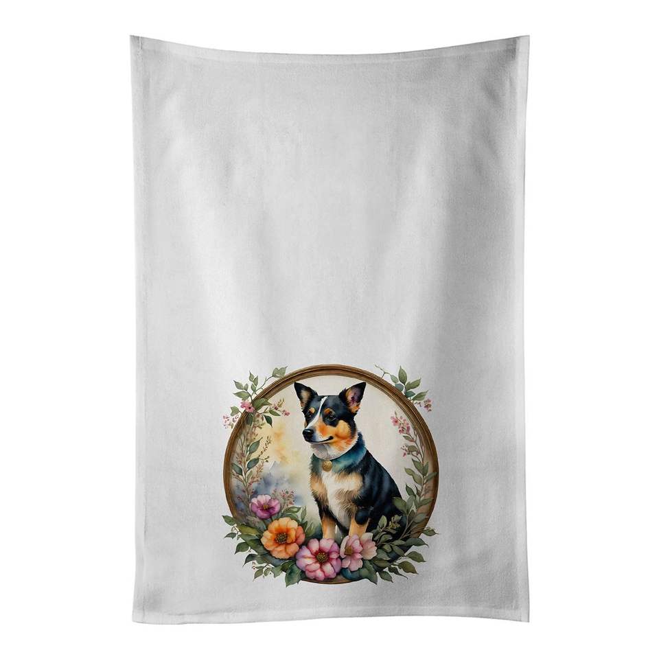 Lancashire Heeler Flowers Decorative 19 X 28\" White Kitchen Towel Set Includes 2 Dish Towels 1 Hand Face Hair Yoga Tea