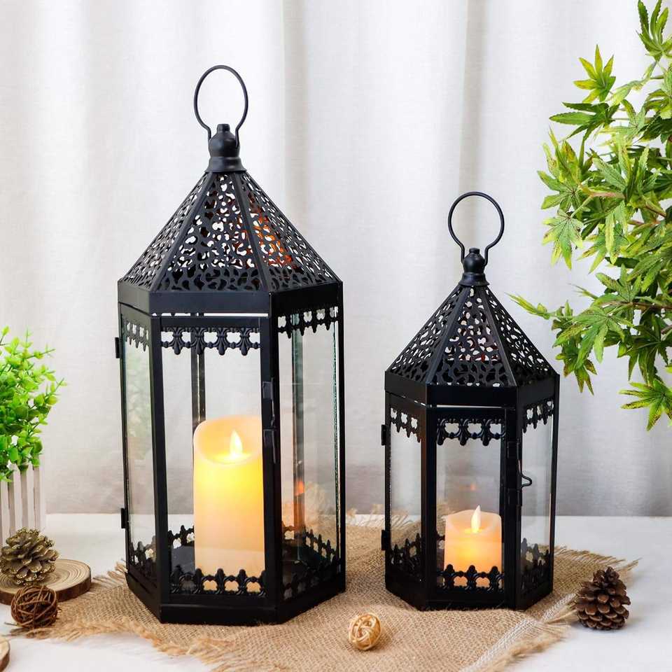 Large Black Metal Lantern Minimalist Tall Pillar Candle Holder Modern Outdoor Hanging Porch Floor Decorative Garden WeddingParty
