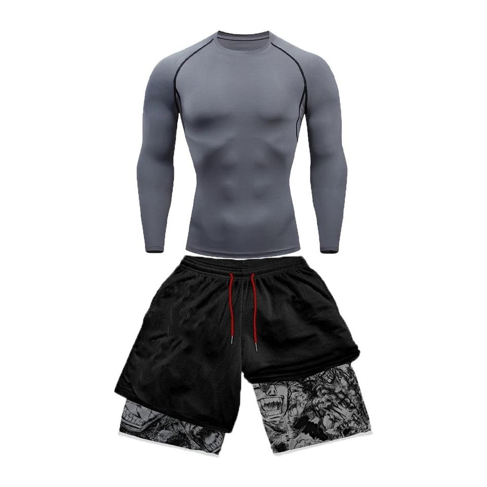 Lanyu Men's Gym Fitness Clothing Slim Fit Compression Sportswear for Training & Jogging Bodybuilding Workout Set for Adults