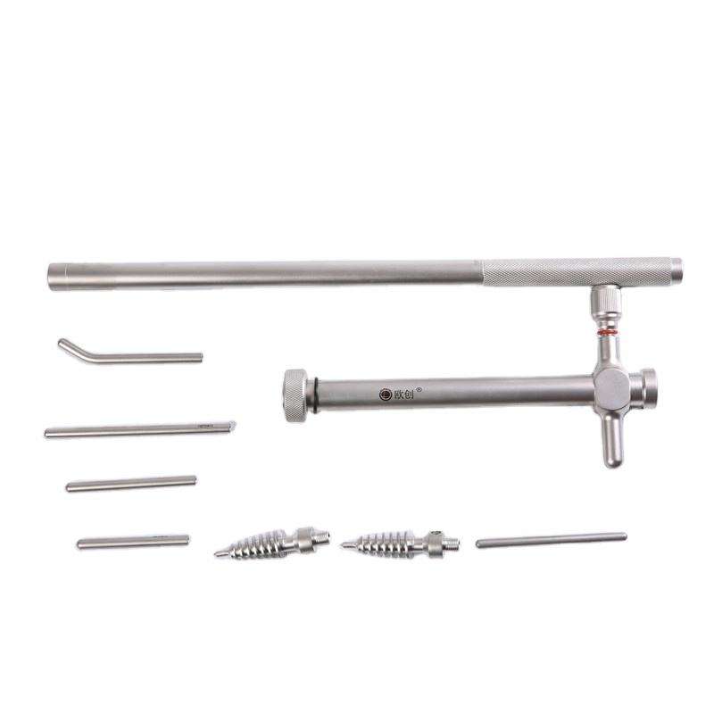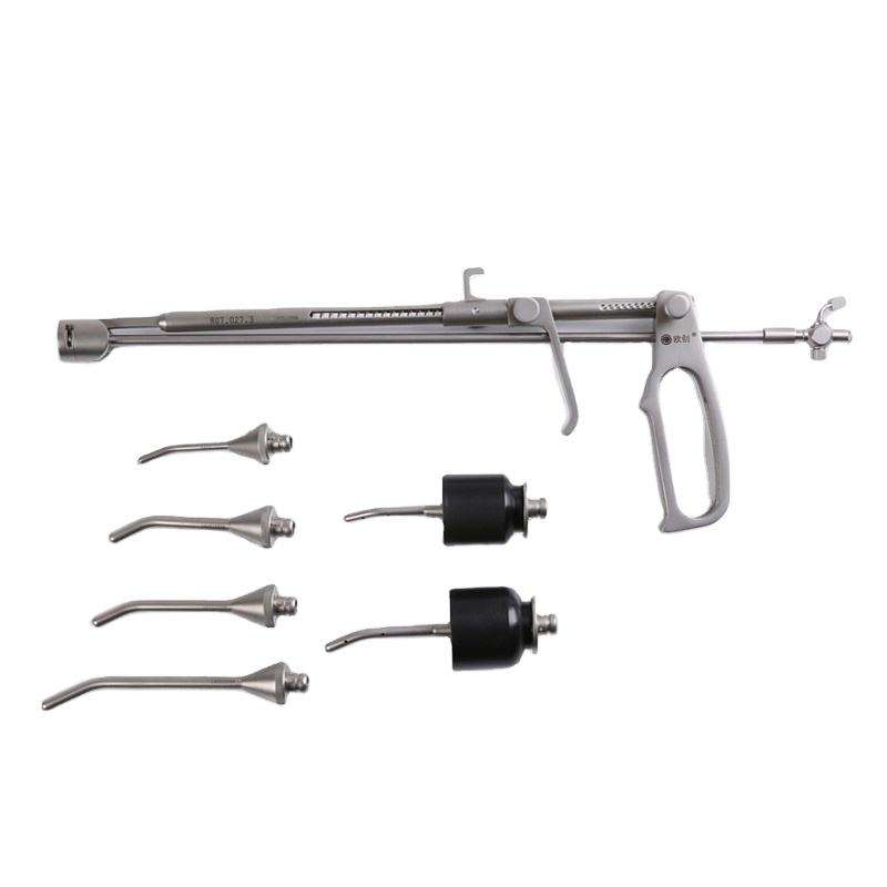 Specification:Material medical grade stainless steel and high strength polymer components, Design laparoscopic suction irrigation gun type handpiece, Set includes suction irrigation gun with multiple interchangeable tips, Function controlled suction and irrigation during laparoscopic procedures, Handle type ergonomic trigger grip for precise flow control, Compatibility standard laparoscopic suction irrigation tubing, Sterilization fully autoclavable and reusable, Application laparoscopic general surgery gynecology laparoscopy urology procedures