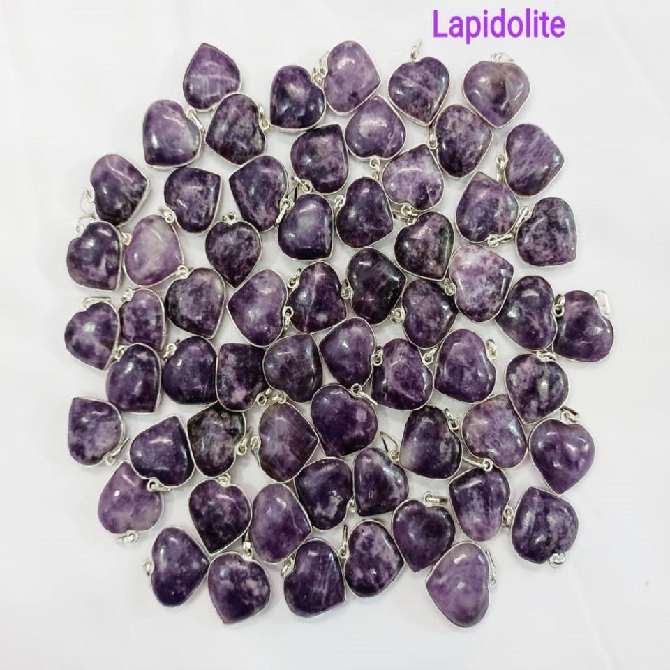 Lapidolite Pendants Top Selling Love Style Bulk Quantity Natural Quartz Agate Silver Rim Semi-Precious Stone Crafts