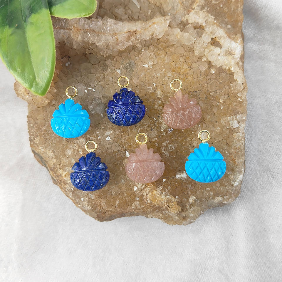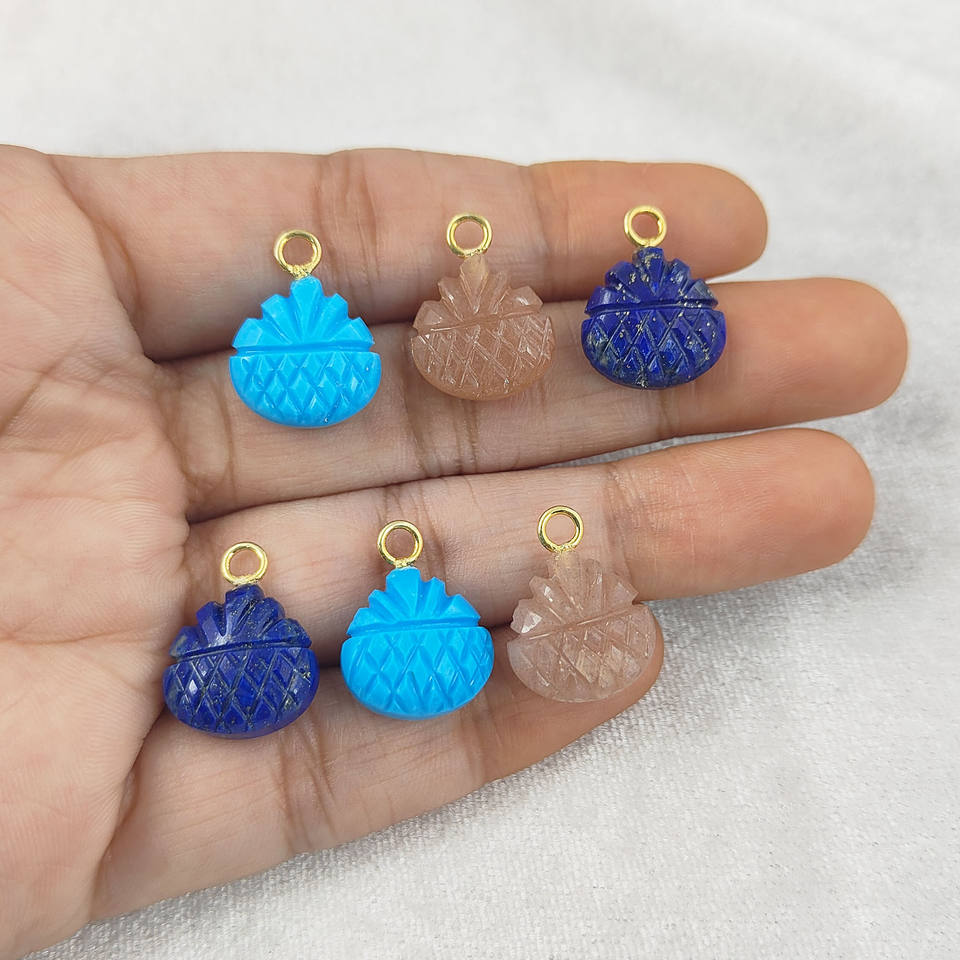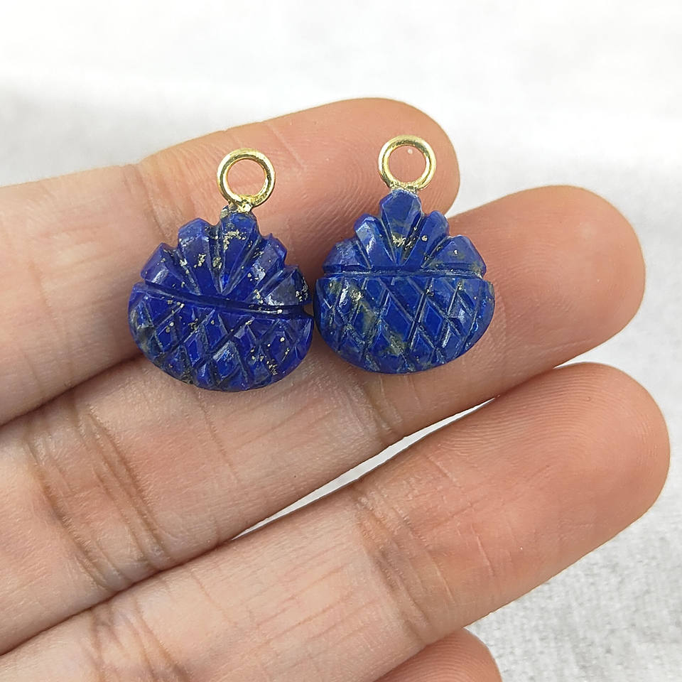 Lapis Lazuli Carved Gemstone Pendant With Pineapple Design Fine Sterling Silver Jewelry for Earrings Indian Wholesale Suppliers