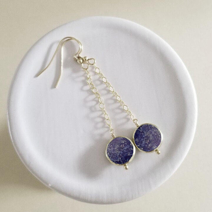 Lapis Lazuli Coin Shape Dangle Earrings Deep Blue Natural Gemstone Silver Plated Handmade Jewelry for Women