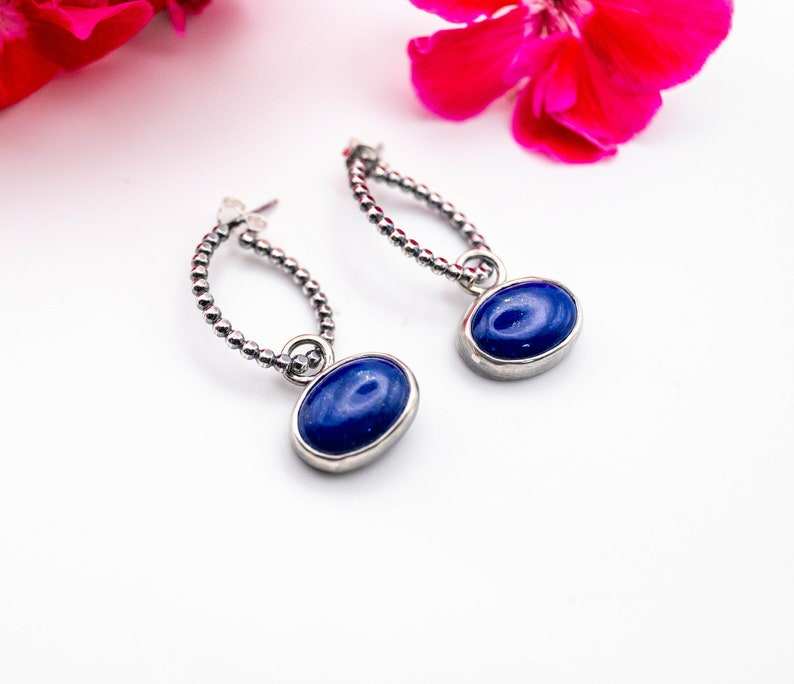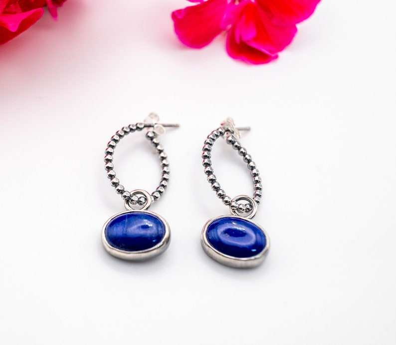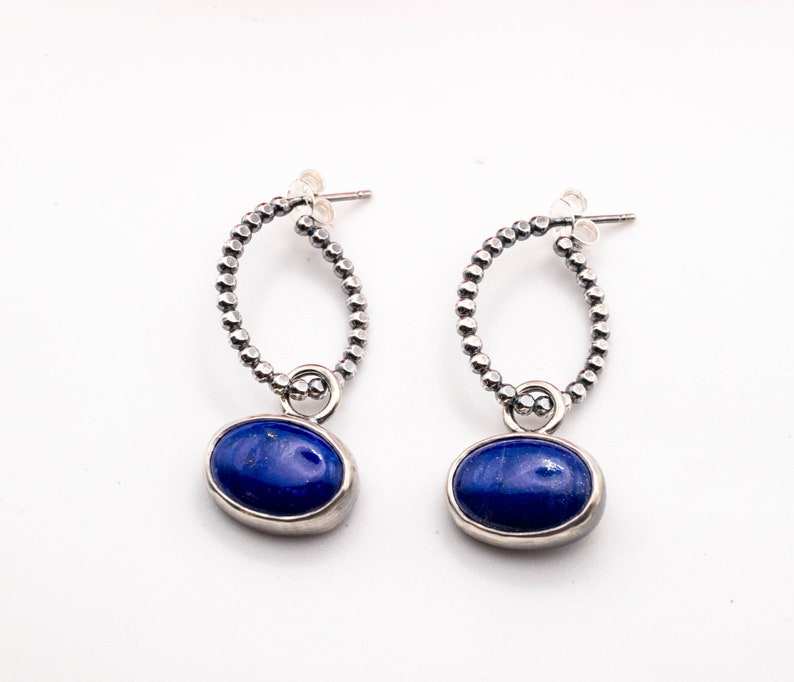 925 Sterling Silver Modern Interchangeable Boho Earrings with Lapis Lazuli Oval Cut Natural Stone Dangle for Wedding and Party