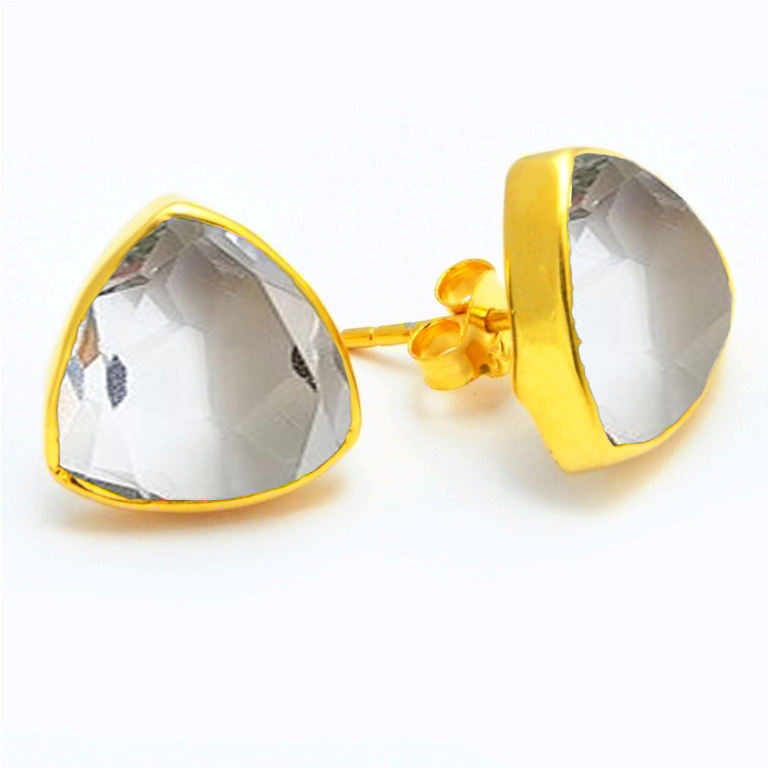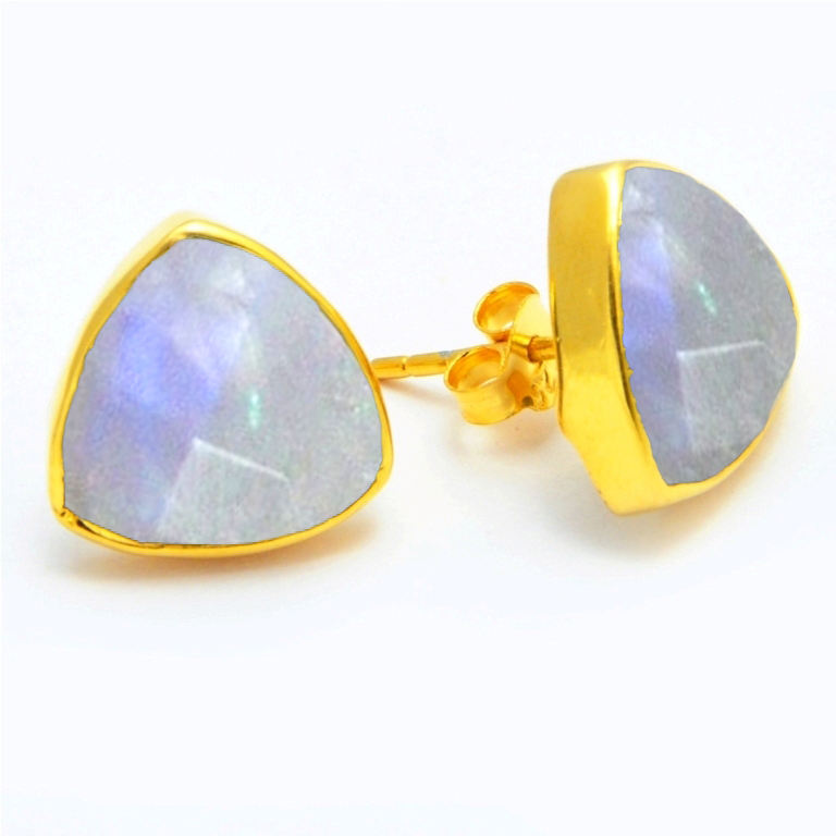 Lapis Lazuli Trillion Gemstone Stud Earrings - Faceted Cut with Gold Vermeil Bezel Earring for Women's Jewelry Making Supplies