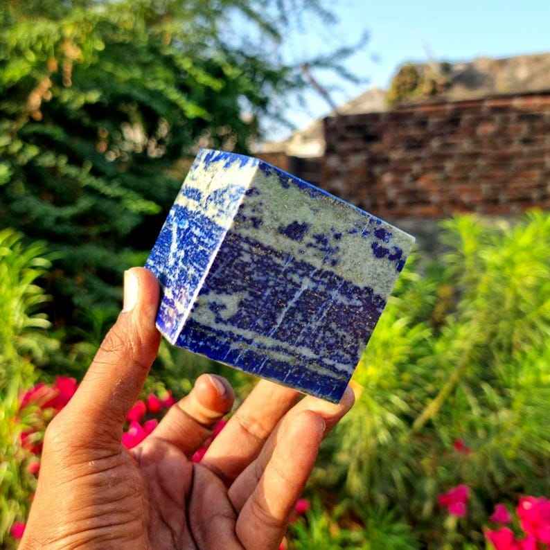 Lapis lazuli Cube Handcrafted Semi Precious Agate Stone Piece With Smooth Texture And Natural Beauty Perfect For Gift Giving
