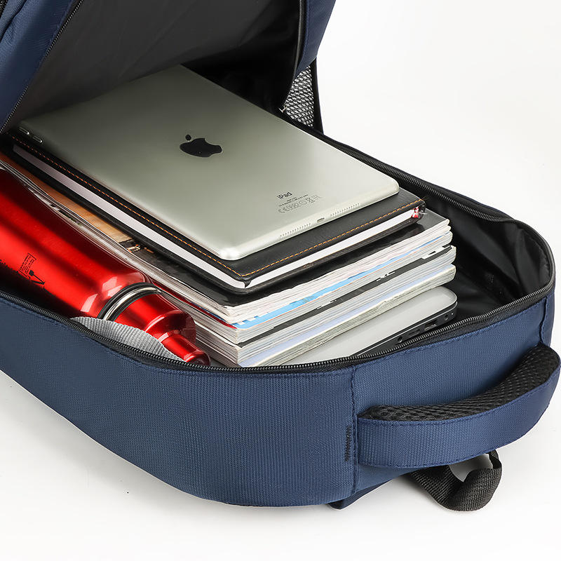 Laptop Backpack 16 Inch Water Resistant Male College Student Business Travel Bag Blue Solid Color Shoulder Straps
