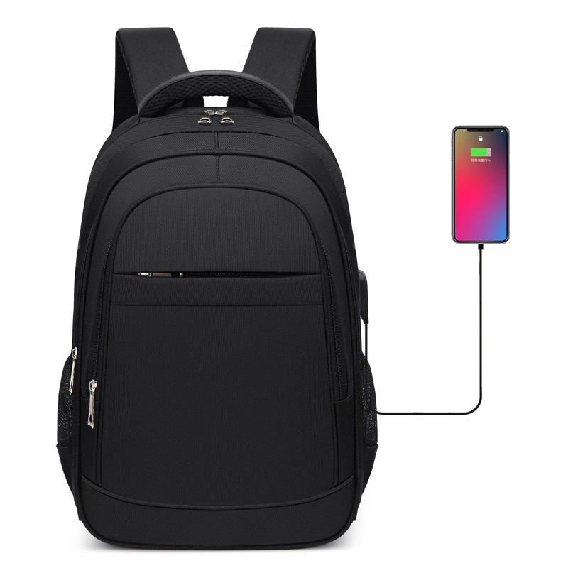 Laptop Backpack Waterproof With USB Charging Port For Business Travel Men's Casual Solid Color Black Blue Gray WZ-6607