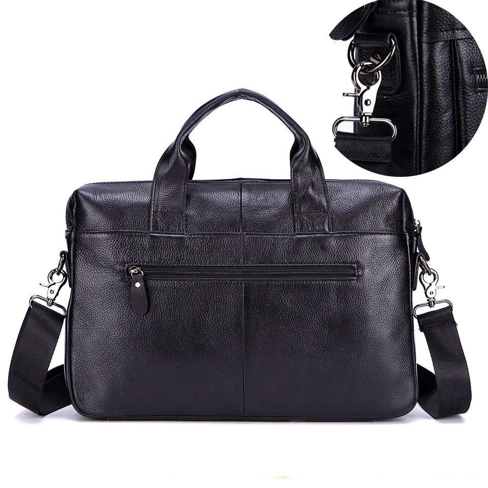 Large 14" Genuine Leather Laptop Messenger Bag Black Men's Business Travel Shoulder Briefcase PK