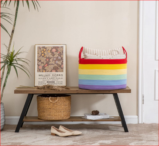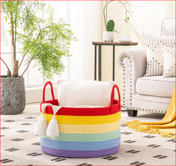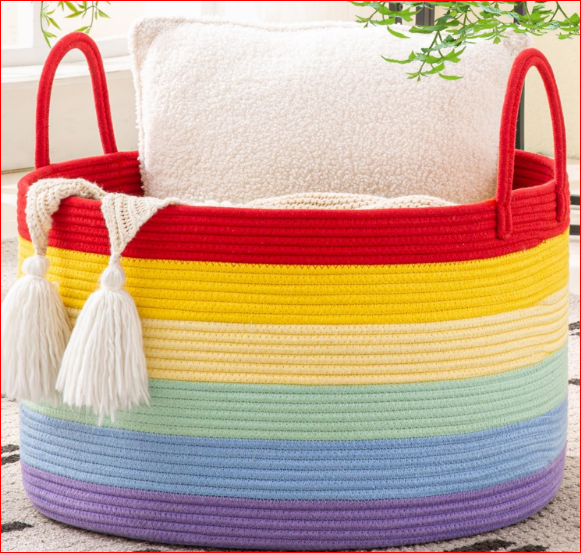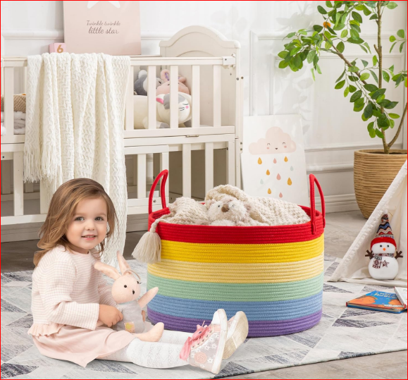 Large 20x13 Durable Cotton Woven Eco-Friendly Fashion Nursery Storage Hamper Baby Laundry Blanket Gift Basket for Living Room