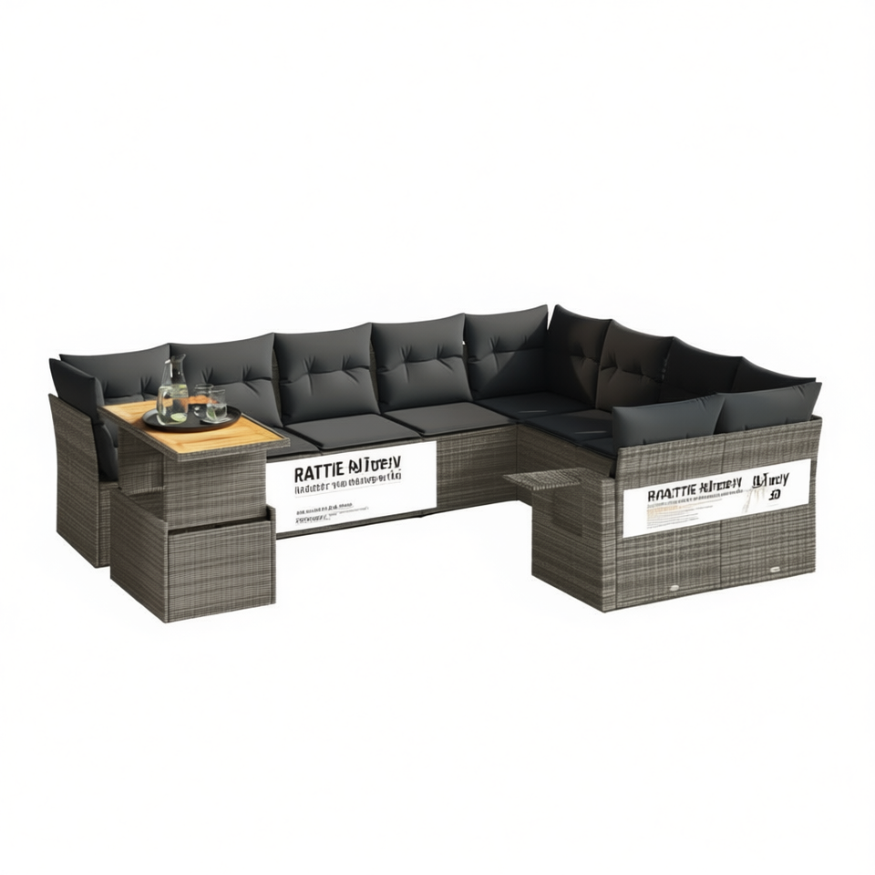 Grey PE Rattan Garden Sofa Set Adjustable Armrest 6 Seater Outdoor Furniture Contemporary Design